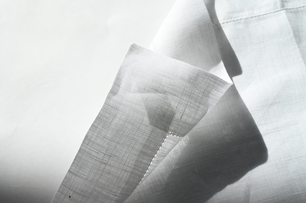 経糸、緯糸に110番手リネン糸を使った繊細なハンカチ。