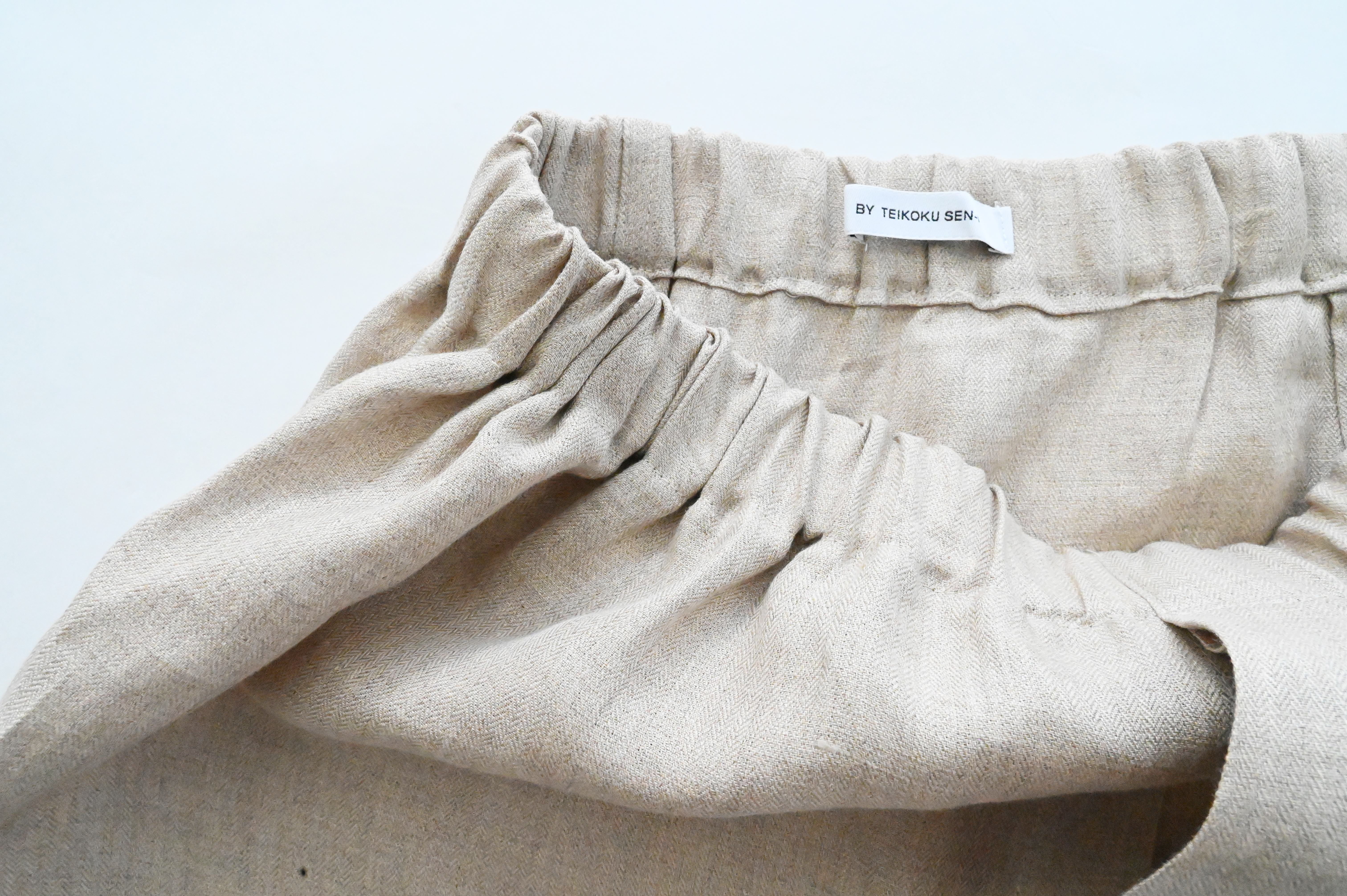 生地は麻番手66番のヘリンボン組織で、柔らかく肌にやさしく馴染みます。